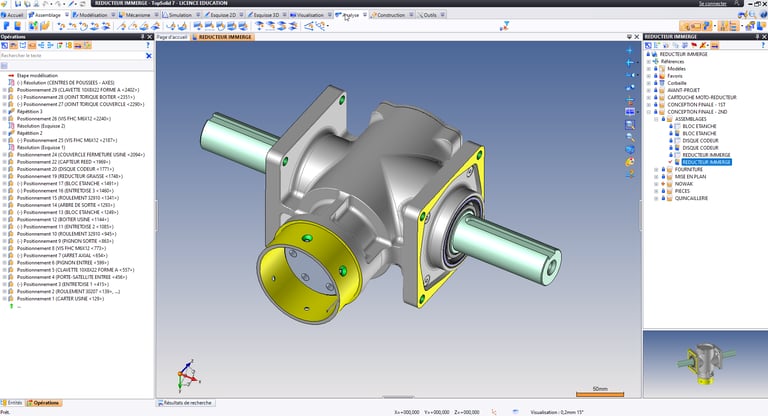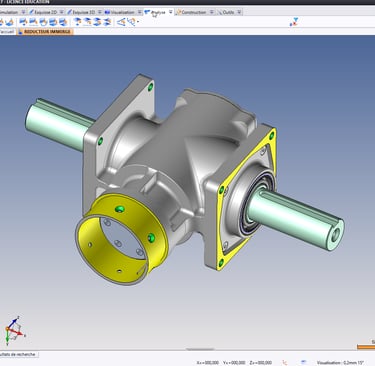 A partir du cahier des charges, conception d'un nouveau réducteur immergé à fort couple. Dimensionnement de la denture et création de systèmes d'étanchéité brevetés.