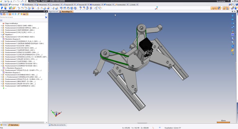 A partir du scan de la machine à rétrofiter et en reprenant certains éléments technologiques pour minimiser les couts, conception et dimensionnement de la motorisation de l'axe Z de la machine.